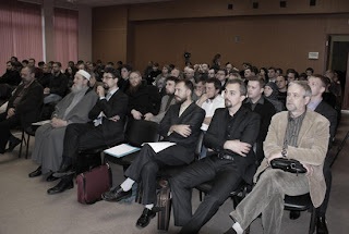As can be seen in the photograph, among the guests were Abd al Wahid Pallavicini and his son Yahya, of the of the CO.RE.IS(Comunità Religiosa Islamica, Islamic Religious Community). Although Italian "political" Traditionalists such as Claudio Mutti(who was also in Moscow) have been interested in Dugin for some time, interest in Dugin on the part of "spiritual" Traditionalists with their origin in Schuon's Maryamiyya is new. Perhaps a sign that Dugin's influence is now so great that the spiritual and political branches may not always remain as separate as they have been in recent decades?